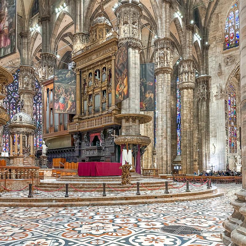 L’organo del Duomo, uno degli strumenti più prestigiosi, è stato sottoposto a un accurato restauro, ancora in atto, con interventi distinti sulla parte decorativa e meccanica. Durante la visita, potrai ascoltare un paio di brani eseguiti dal vivo dal Maestro organista e scoprire come le competenze di Luca Quartana e Ilic Colzani hanno riportato lo strumento al suo splendore originale. Un incontro unico tra musica, storia e restauro.