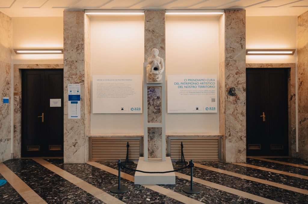 Thanks to support from A2A and following authorisation from the Superintendency of Archaeology, Fine Arts and Landscape for the Metropolitan City of Milan, the fully cleaned and reinforced statue has left the Veneranda Fabbrica’s Marble Workshop, where it was being temporarily stored, and has arrived at the company’s headquarters in Milan where it will stay on loan for one year, with the possibility of renewal. Our beautiful Mermaid now greets the people who pass through the main atrium of the building, just as the numerous statues of Milan Duomo have always done, silently observing and keeping watch over the many worshippers, citizens, and visitors who walk under the shadow of the Cathedral every day. They are part of its history, as are the statues that can no longer be displayed in the Cathedral for conservation reasons, but nonetheless are still able to recount their everlasting links to the Duomo.